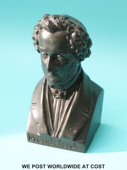 Pierre Joseph Chardigny (French 1794-1866) bronze bust of Felix Mendelssohn, signed and dated 1853 to the reverse (13cm tall)