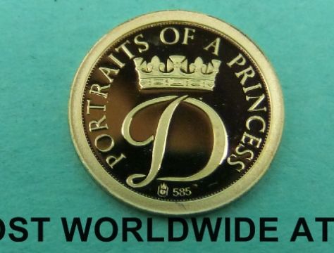 Six miniature gold Princess Diana commemorative coins, together with a miniature gold Krugerrand each weighing 0.5g with certificates