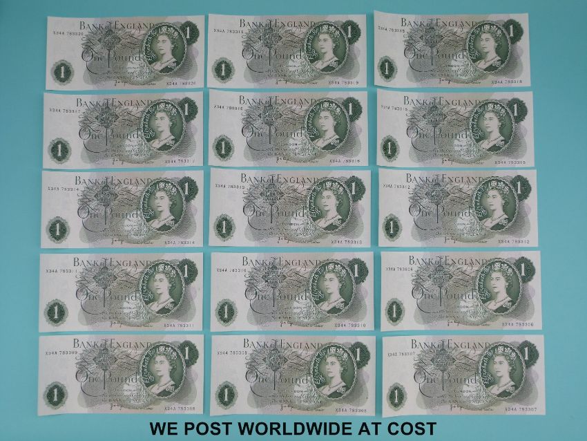 Fifteen consecutive crisp uncirculated JB Page £1 notes x34A 783320-783306