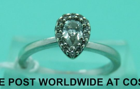 A 9ct white gold ring set with a pear cut diamond surrounded by further smaller diamonds, approximately 0.22ct (size K)