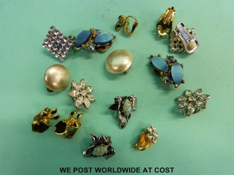 A collection of compacts, beaded necklaces, chains, silver chain and locket, silver brooch etc.