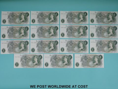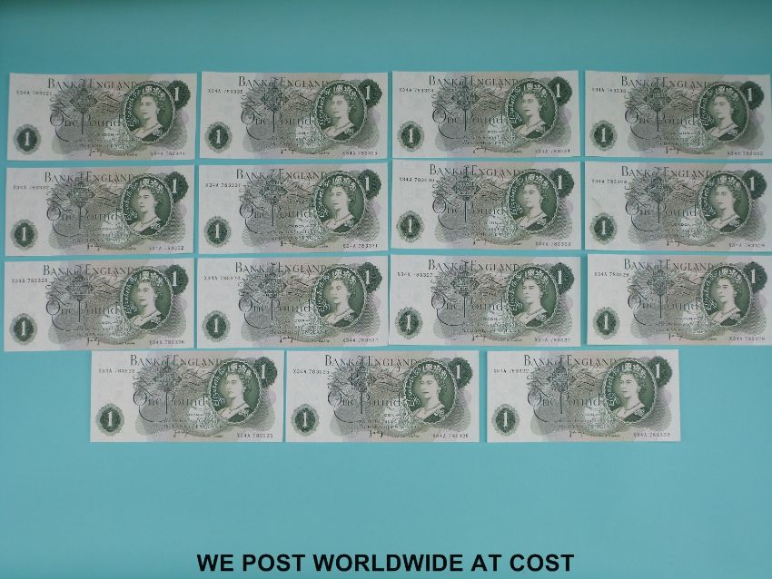Fifteen consecutive crisp uncirculated JB Page £1 notes x34A 783321-783335