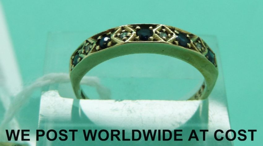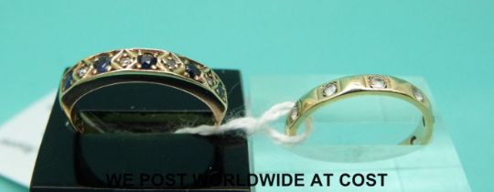 Two 9ct gold rings, one set with spinel (size M) and the other with alternating sapphires and diamonds (size O)