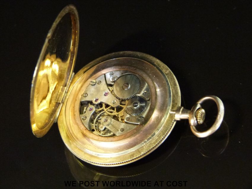 A slender 9ct gold pocket watch with Arabic numerals, keyless wind movement, engine turned face and broad bezel, case diameter 48mm, 51g.