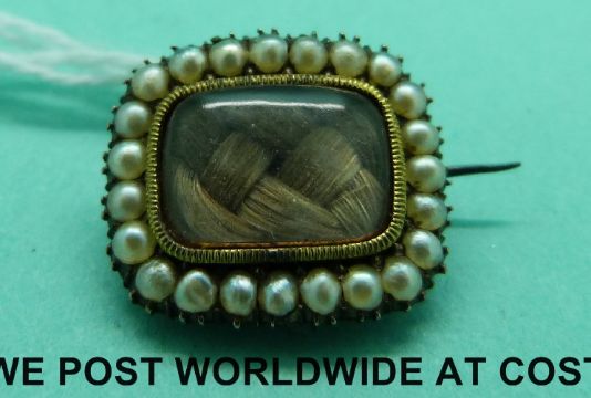 A Georgian/ Victorian mourning brooch set with pearls