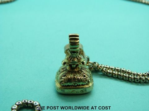A 9ct gold guard chain made up of small spherical links with star design and a fob set with a seal (40g)