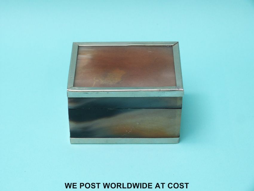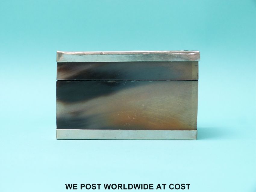 A white metal edged horn or similar box