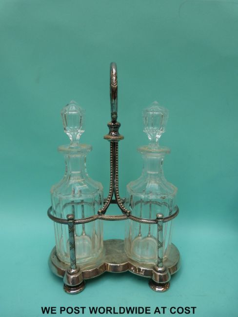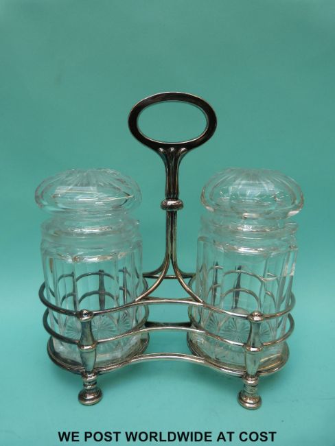 Three Elkington silver plate and cut glass pickle/oil/condiment sets