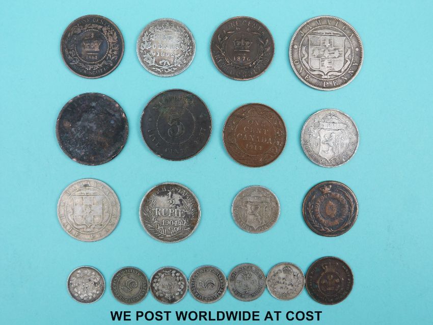 A cachet of Victorian etc. Canadian and colonies silver coinage to include Jamaica 1893 penny etc. together with copper examples