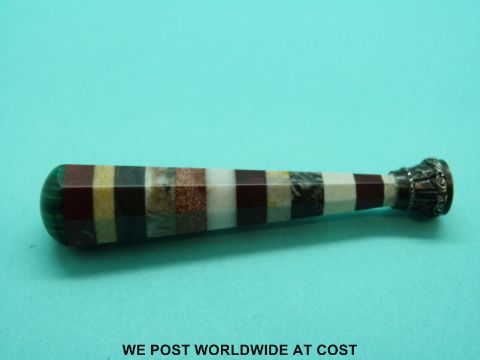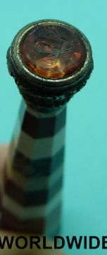 A sectioned agate intaglio seal set with a citrine seal with carved butterfly in white metal mount
