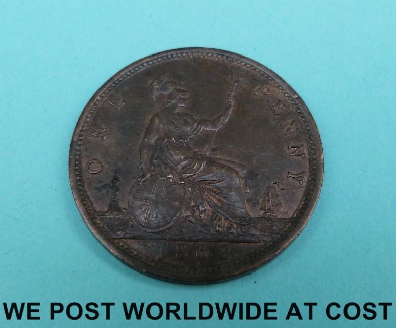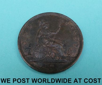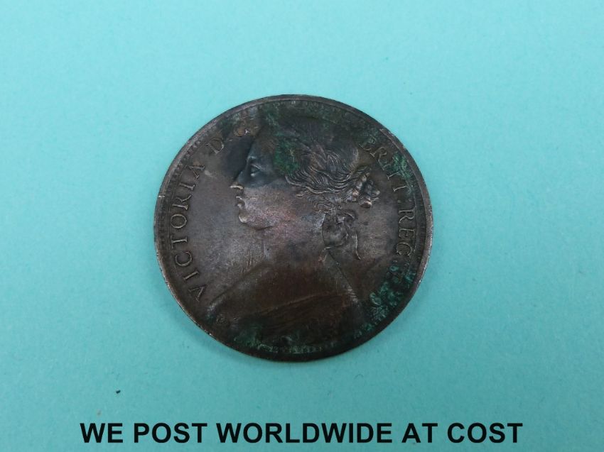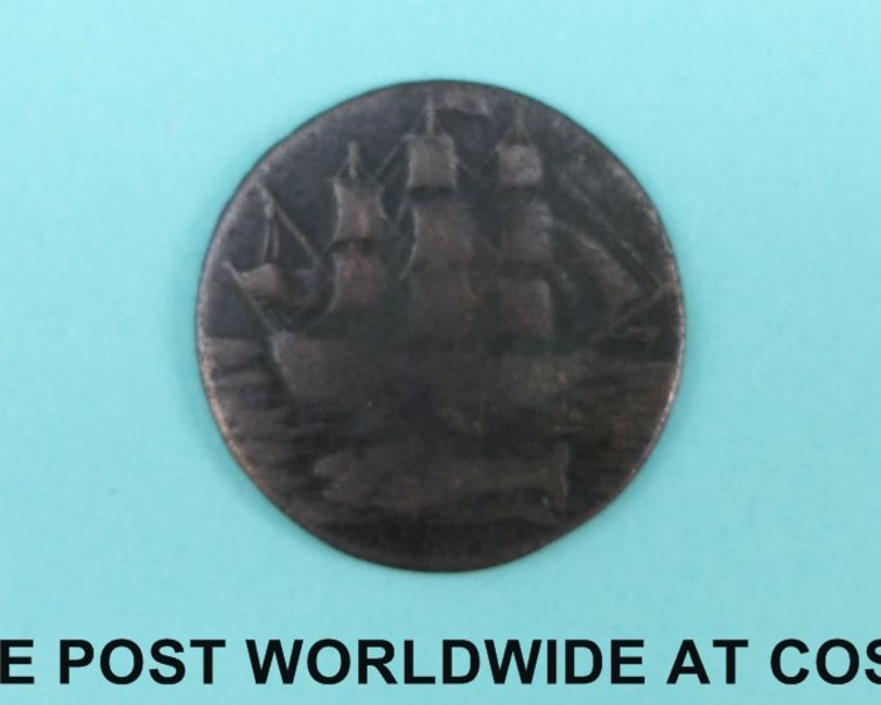 An 1892 Victorian bun head penny VF (some verdigris to obverse) together with a Hampshire Portsea Promissory half-penny token 1796 F