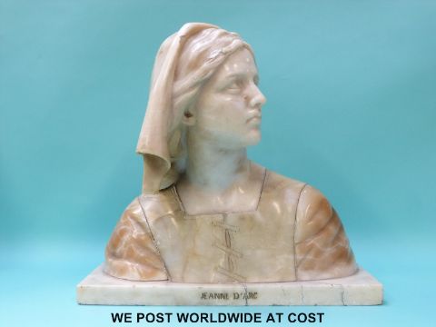After professor G.Besji (French) Grand Tour 19th century carved marble or alabaster bust Jeanne D'Arc, titled to plinth, height 36cm