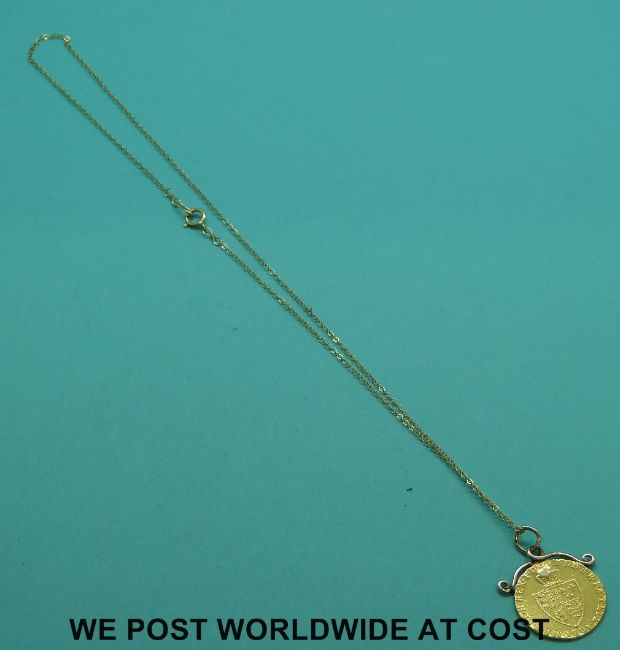 A 1791 George III half guinea coin mounted as a necklace (4.8g)