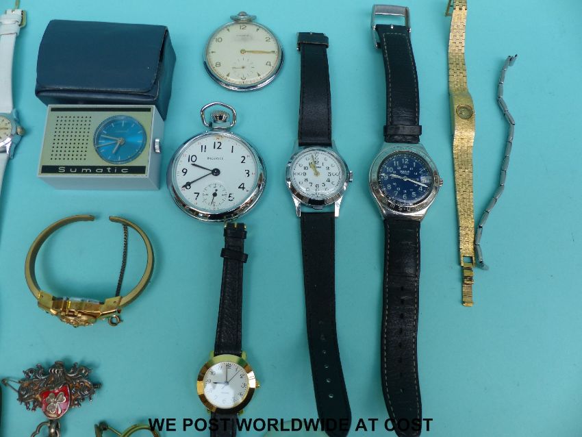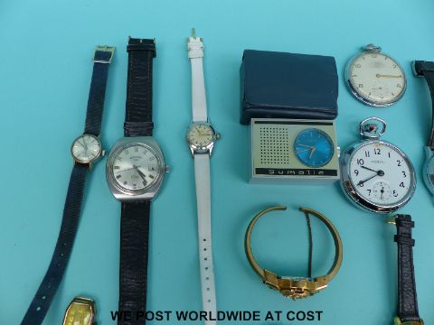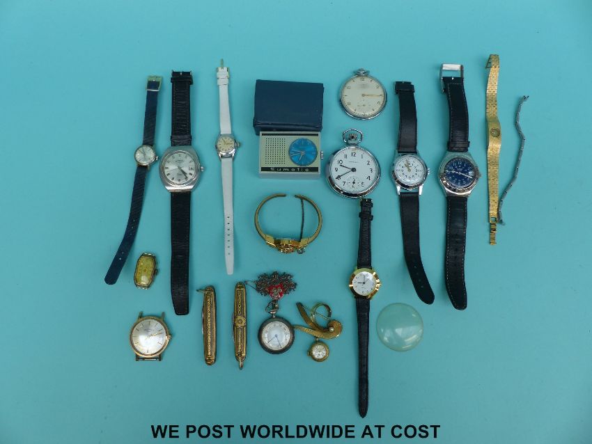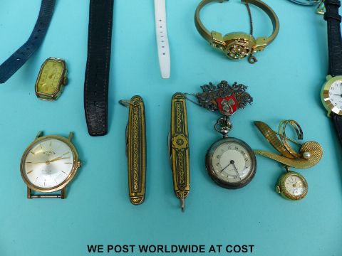 A collection of various wristwatches together with two Damascene inlaid penknives.