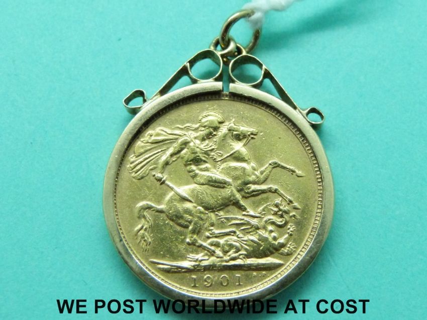 A 1901 gold full sovereign mounted in a 9ct gold pendant (9.5g)