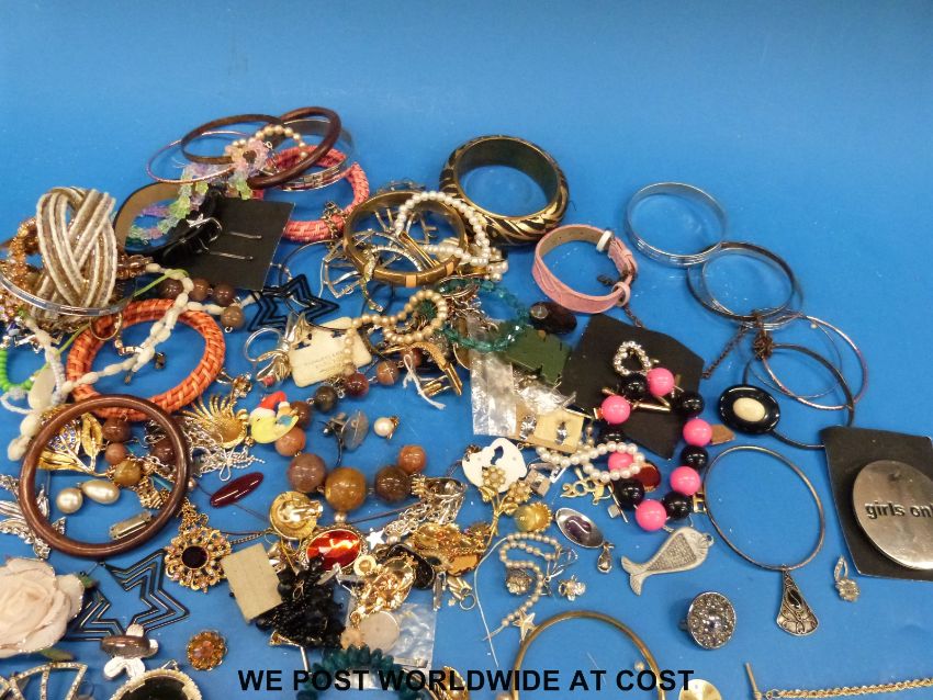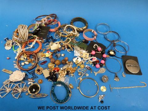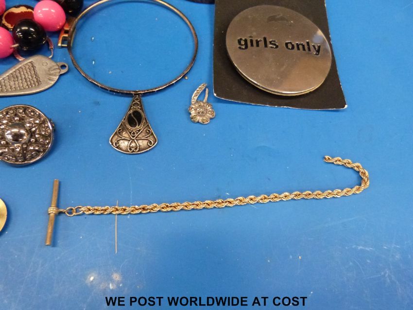 A collection of costume jewellery to include 9ct gold chain, agate beads etc.