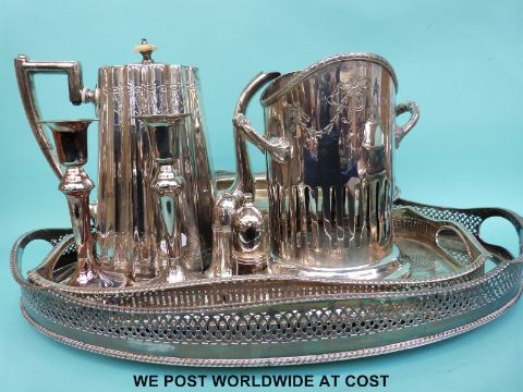 A collection of silver plate to include trays (largest length 45cm) coffee pot, dishes etc