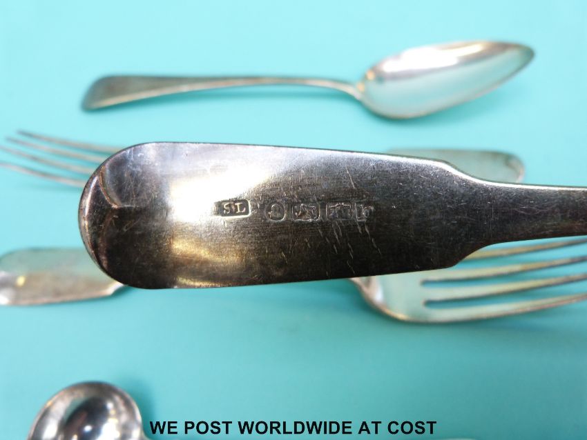 A quantity of Georgian and later hallmarked silver cutlery, mainly fiddle pattern (186g)
