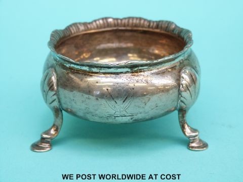 A Georgian Scottish hallmarked silver hoof footed open salt, Edinburgh 1777, maker James Gilliand (60g)