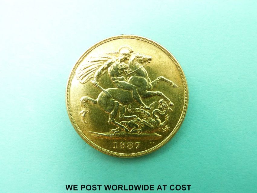 An 1887 Queen Victoria Jubilee head gold double sovereign, VF