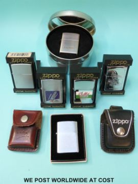 Eight Zippo lighters including Pierre Cardin, most in original boxes