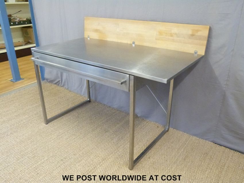 An Ikea Dacke stainless steel kitchen catering table with soft close drawer (L150 x D107 x H91cm)