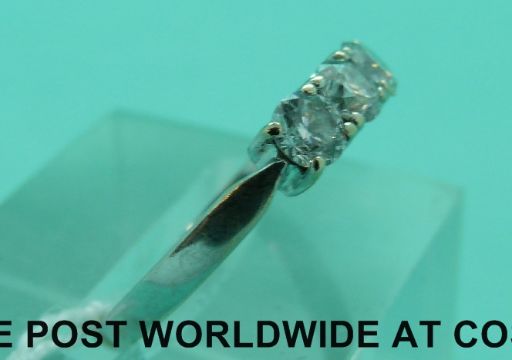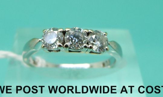 An 18ct white gold ring set with three diamonds, total diamond weight approximately 0.75ct (size K)