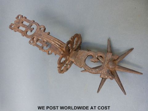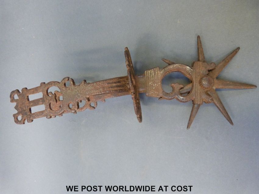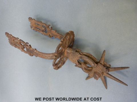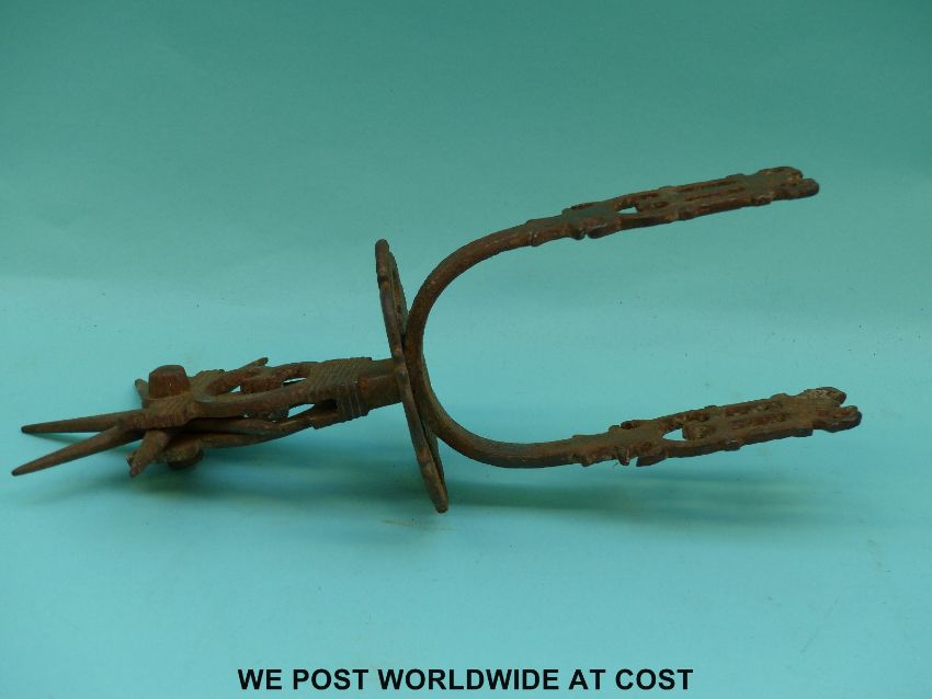 A 17th / 18th century steel spur possibly Mexican or Spanish, length 29cm