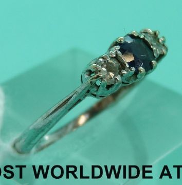 An 18ct white gold ring set with a sapphire and two diamonds (size M)