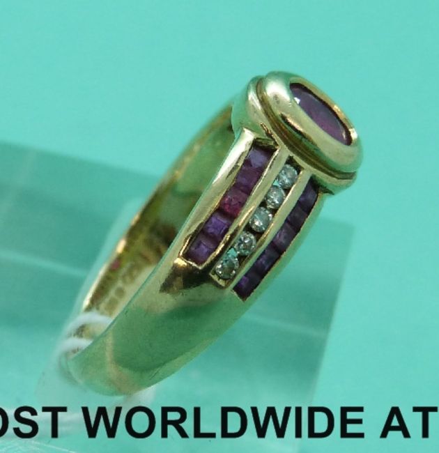 A 9ct gold ring set with rubies and diamonds (size L)