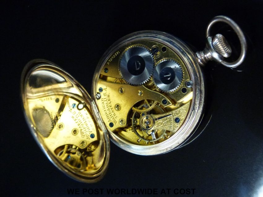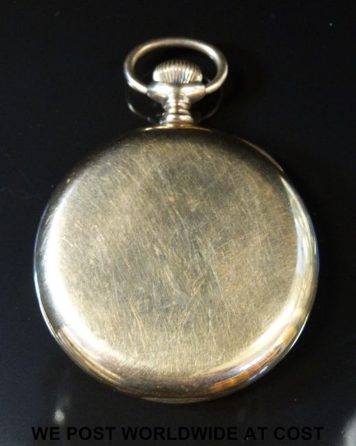 Waltham 9ct gold keyless winding open faced pocket watch with inset subsidiary seconds dial blued hands and Roman numerals, case diameter 50mm, 88g.
