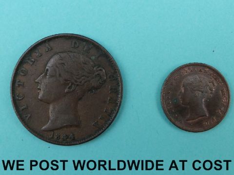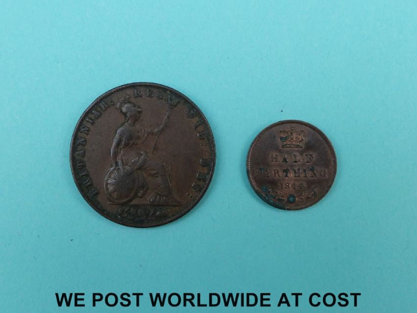 An 1844 Victorian halfpenny together with an 1844 half farthing