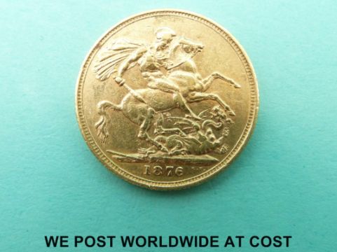 An 1876 Queen Victorian young head, second reverse gold full sovereign