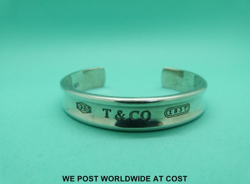 A silver bangle marked Tiffany & Co, 1837 collection in Tiffany & Co box