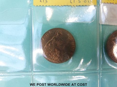 A study of 18th, 19th and 20th century copper coinage, some very fine with lustre examples including 1826 George IV, 1853 and 1874 Victorian bun heads and London coin purchases 1908, 1916, 1917 and 1925 examples (nine coins)