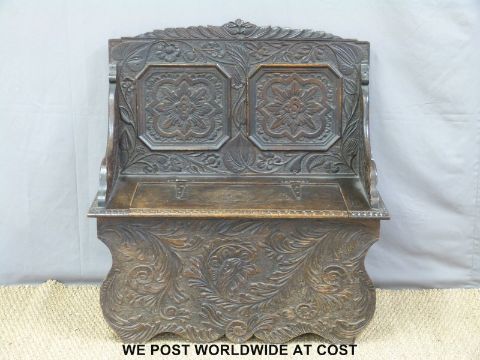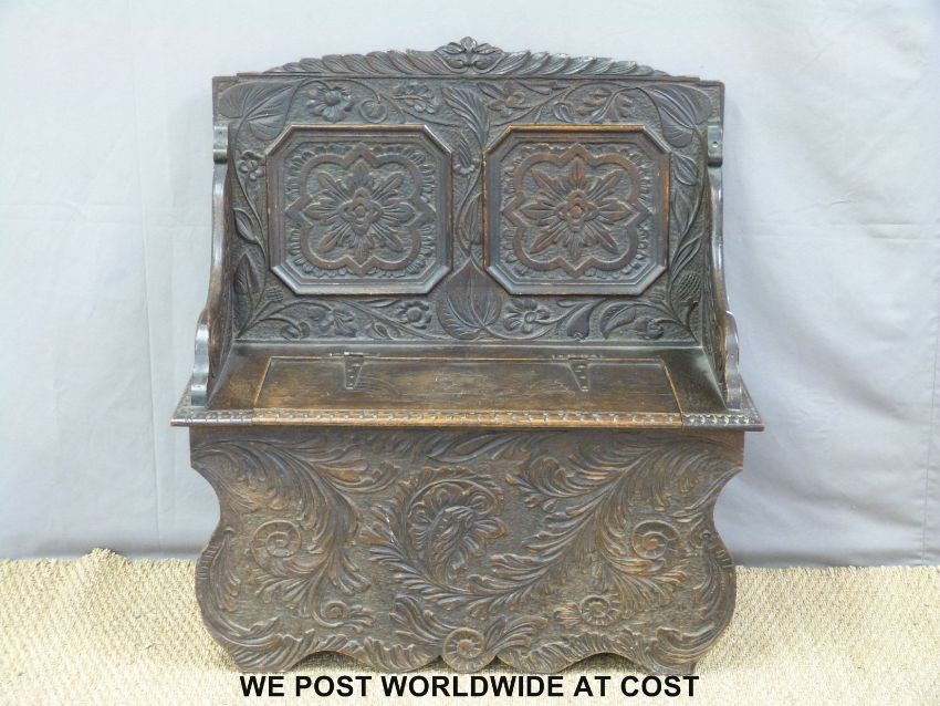 A 19th/20th century carved oak monk's bench (W91 x D40 x H98cm)