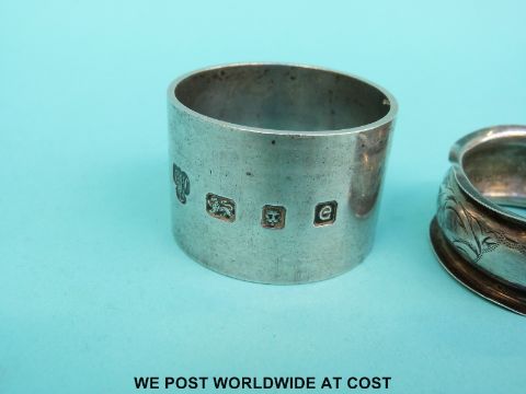 Five various hallmarked silver napkin rings to include a boxed pair and a feature hallmarked example (133g)