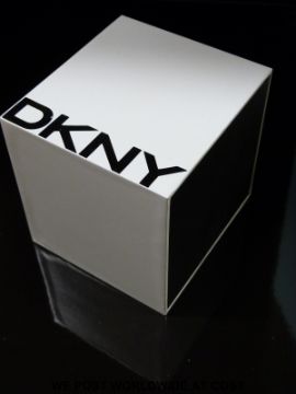 DKNY ladies chronograph wristwatch with date aperture, two-tone hands, jewelled markers and pearlised white face, on stainless steel bracelet, case diameter 34mm, in original box with paperwork.