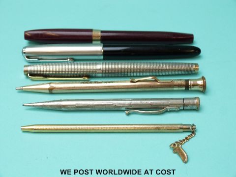 A collection of vintage pens and pencils including Parker, Sheaffer, Eversharp etc, one Parker example marked sterling silver