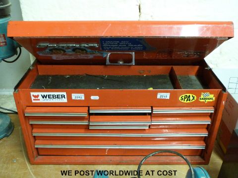 A snap on nine drawer bench top tool box
