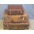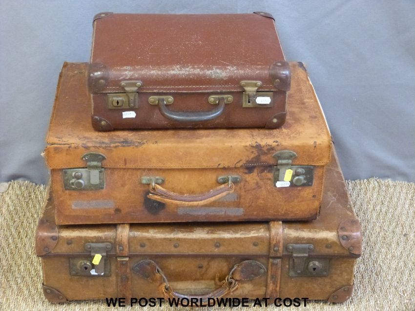 Three vintage leather suitcases.