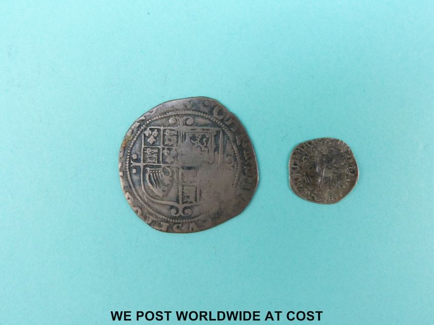 A Charles I shilling, some clipping, together with a hammered penny