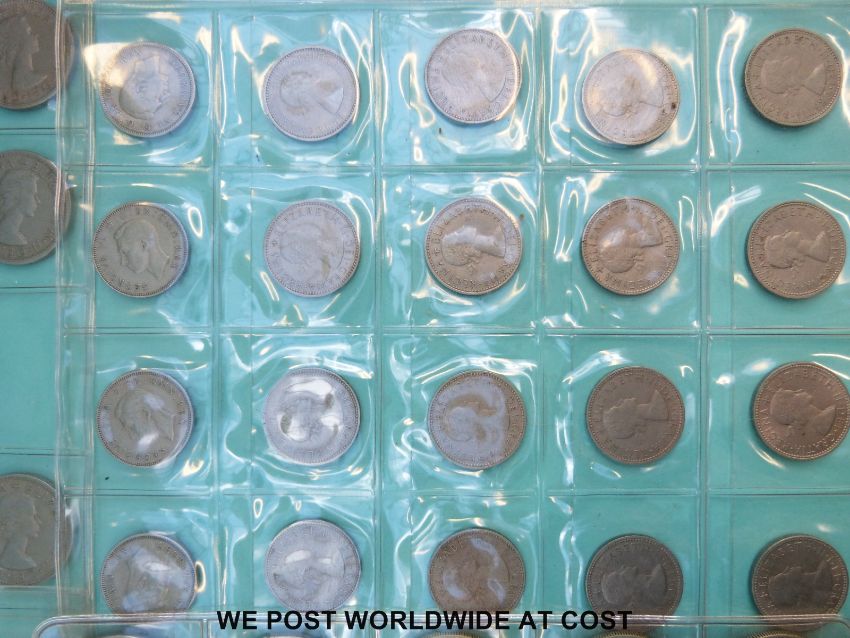 An amateur collection of UK "silver" coinage to include consecutive dates, pre-1947 content and Victorian, also included are two VF 1959 florins