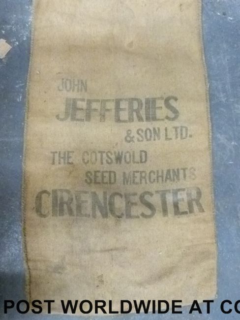 Cirencester Brewery Ltd soda siphon crate, John Jefferies Cirencester Seed Merchants hessian sack plus a wooden box.