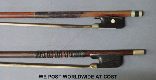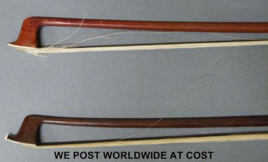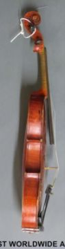 A cased German made violin labelled copy of Antonius Stradivorius, with 36.2cm flame back, impressed 'conservatory violin' to back of scroll, complete with two bows
