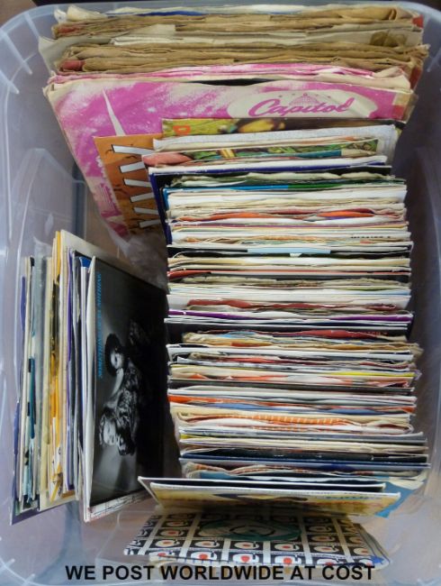Approximately 130x 7" singles and EPs and 20x 78s, includes a number of collectable items: Lee Hazlewood "Words Mean Nothing"; The Clayton Squares "Come And Get It"; Laurie Lee "Tell Tommy I Miss Him"; The Fireflies "You Were Mine" ; Cliff Richard EPs "No 1" and "Expresso Bongo" and several green label Columbia singles. There are also 3x Gene Vincent 78s and singles by The Smiths, The Redskins, U2, Robert Wyatt etc. The condition of the vinyl appears to be mostly very good to excellent.