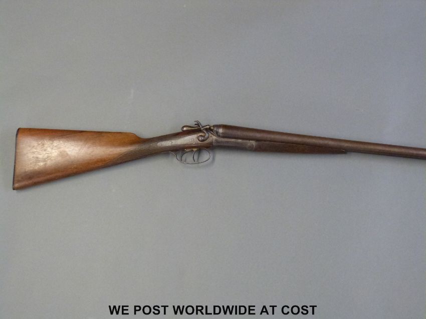 Unnamed 12 bore side by side hammer action shotgun with ornately engraved side locks and hammers, double trigger and 29.75 inch Damascus barrels, NVSN, overall length 118cm PLEASE NOTE THAT A VALID RELEVANT FIREARMS/SHOTGUN CERTIFICATE IS REQUIRED TO HANDLE/PURCHASE THIS ITEM.