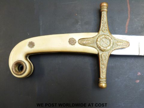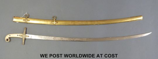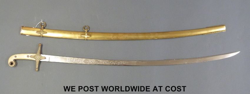 A reproduction British Marmeluke 1831 pattern general's sword marked Hobson & Sons London, in brass scabbard (blade length approx 84cm)