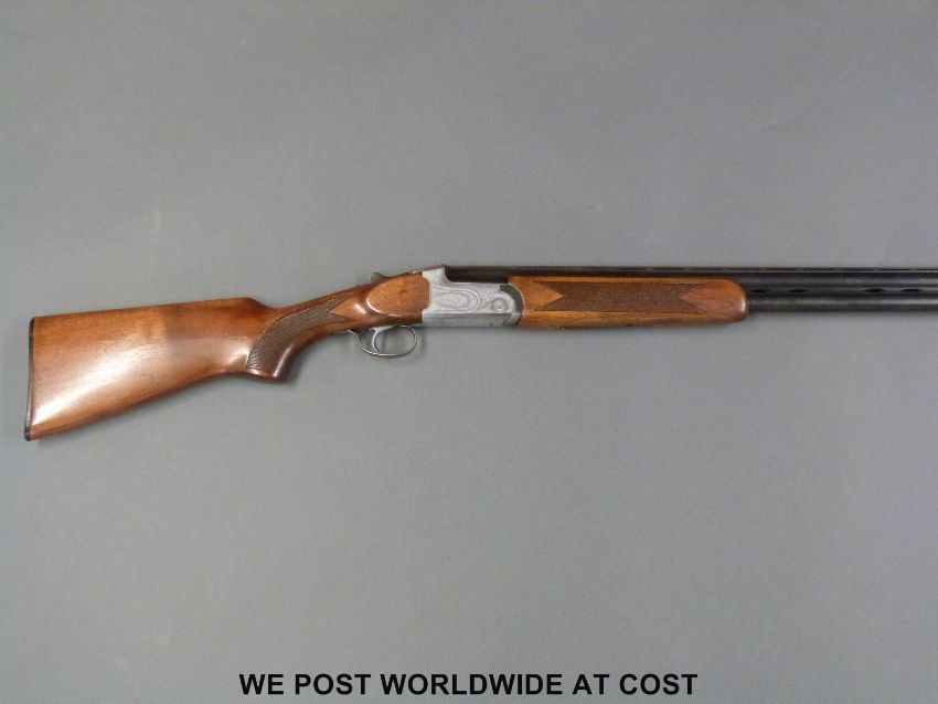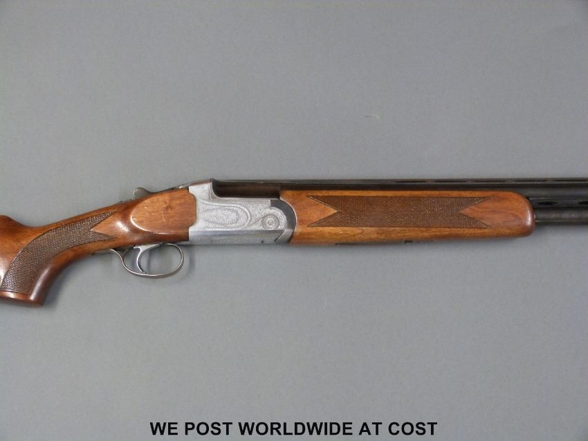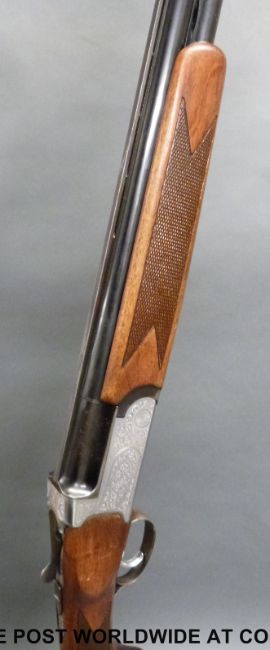 Midland Gun Company 12 bore over and under shotgun with ornate engraving, chequered grip and forend and vented top rib to the 27.5 inch barrels, overall length 115cm, serial number 79911. PLEASE NOTE THAT A VALID RELEVANT FIREARMS/SHOTGUN CERTIFICATE IS REQUIRED TO HANDLE/PURCHASE THIS ITEM.