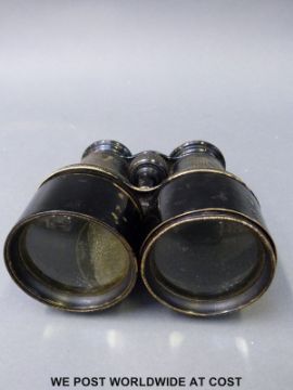 A pair of military binoculars marked John Paul Irven HMS Agincourt January 1888, in original leather case